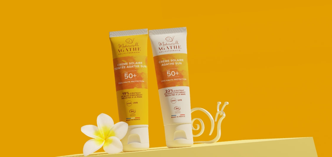Unsere Agathe Sun-Behandlungen sind mit Schneckenschleim angereichert, der eine beruhigende, regenerierende und heilende Wirkung hat. Schneckenschleim hilft, die Haut vor oxidativem Stress als Reaktion auf Entzündungen durch Sonneneinstrahlung zu beruhigen.
