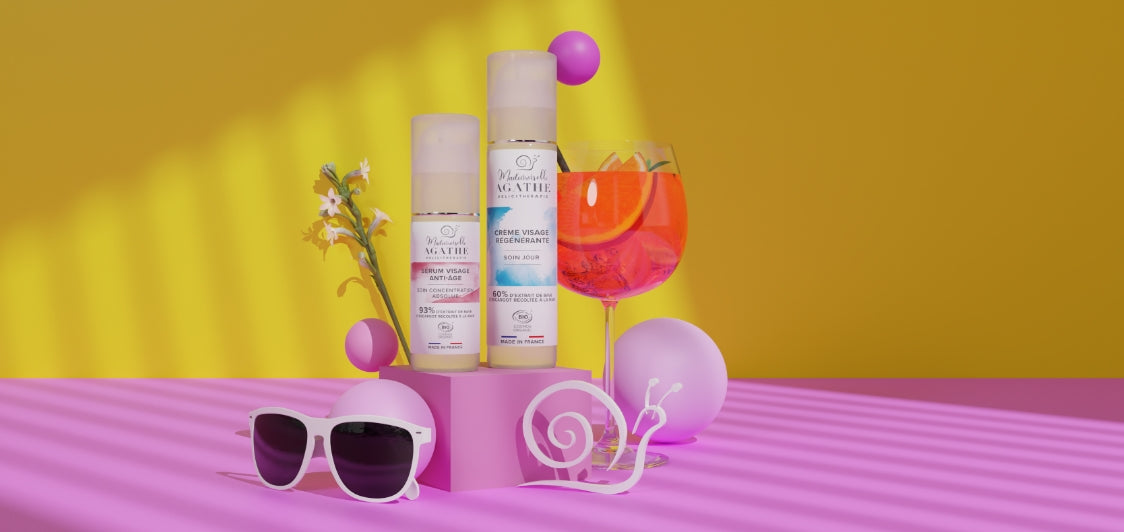 Helix aspersa mucus ist auch ein natürlicher Schutzschild gegen sommerliche Aggressionen. Er hilft, abgestorbene Hautzellen zu entfernen und feine Linien und Fältchen zu reduzieren. Die keratolytische Wirkung beruht auf der Fähigkeit, interzelluläre Bindungen aufzulösen und die Ablösung abgestorbener Hautzellen zu erleichtern. Anschließend stimuliert es die Zellerneuerung, indem es die Produktion von Kollagen und Elastin erhöht. Um seine regenerative Wirkung auf die Haut auszuüben, erhöht Schleim die Migration und Expression von Zell-Zell- und Zell-Substrat-Adhäsionsmolekülen in Fibroblasten und Keratinozytenzellen. (Liudmyla et al., 2022; Adikwu et al., 2008)