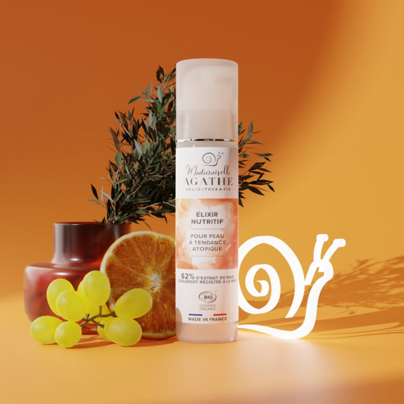 Bei Mademoiselle Agathe kombiniert unsere nährende Elixiercreme die außergewöhnlichen Vorteile von Schneckenschleim mit sechs sorgfältig ausgewählten Wirkstoffen, um empfindliche, unausgeglichene oder zu Neurodermitis neigende Haut zu nähren, zu beruhigen und wiederherzustellen. Seine konzentrierte Formel lindert Unwohlsein und stimuliert gleichzeitig die Zellregeneration für eine stärkere und besser geschützte Haut.