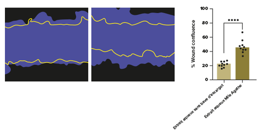 Diese Studie wurde von Professorin Brigitte DrĂ©no, Dermato-Onkologin am UniversitĂ€tsklinikum Nantes, und Faris Matouf, Forschungsingenieur und Doktor der VeterinĂ€rmedizin, durchgefĂŒhrt, um die heilenden Eigenschaften unseres Schneckenschleimextrakts zu untersuchen. Die an humanen Keratinozyten (HaCaT-Zelllinie) durchgefĂŒhrte Studie zeigt eine signifikante Stimulation der Zellregeneration.