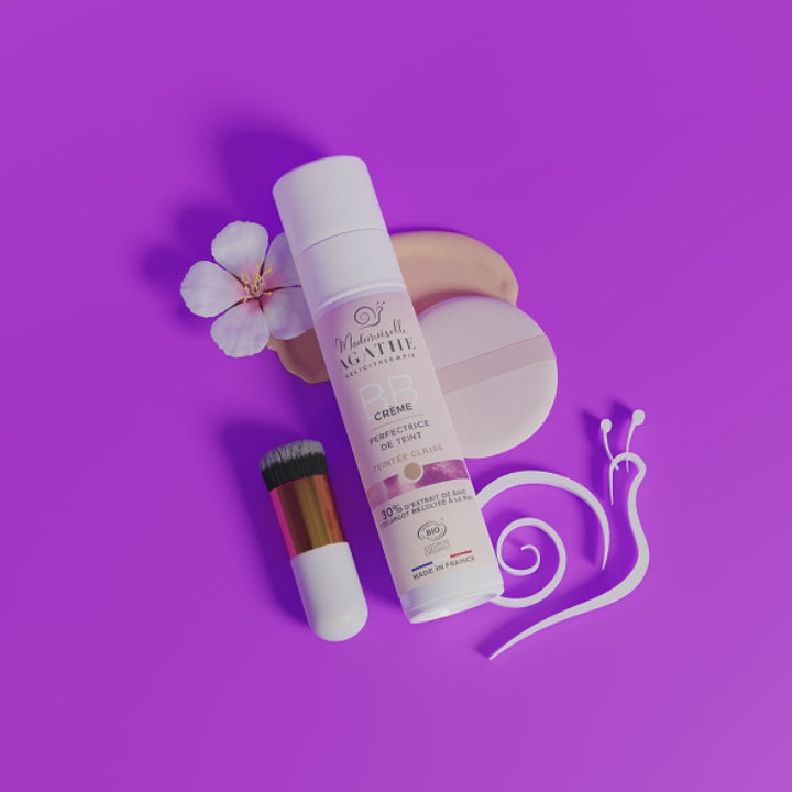 Unsere BB-Creme wurde speziell für alle Hauttypen entwickelt, auch für die empfindlichsten. Es geht über ein einfaches Produkt zur Verbesserung des Teints hinaus und bietet auch Vorteile für die Hautpflege. Mit einer Konzentration von 30 % im Schneckenschleim spendet es Feuchtigkeit, reinigt und hat wohltuende antioxidative Eigenschaften für Ihre Haut. Auch die in der Formel enthaltene Aloe Vera trägt zur Hydratation bei. Die verwendeten Wirkstoffe sind biologischen Ursprungs und wurden so ausgewählt, dass sie alle Hauttypen respektieren und gleichzeitig nicht komedogen sind, was bedeutet, dass sie die Poren nicht verstopfen.