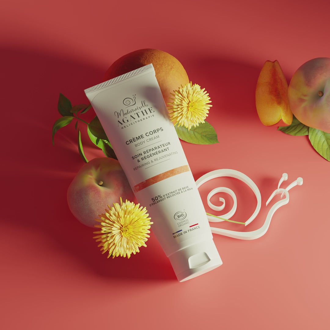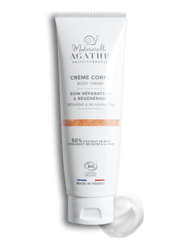 Mit einer sehr weichen und nicht fettenden Zusammensetzung kann diese Creme auf den ganzen Körper aufgetragen werden. Es hilft, eine gute Hautfeuchtigkeit wiederherzustellen, zu der adstringierende, weichmachende und schützende Eigenschaften dank Schneckenschleim und Aloe Vera hinzugefügt werden. Es nährt die Epidermis dank Sheabutter, die reich an Fettsäuren und Vitamin E ist, um trockene Haut zu erweichen und zu regenerieren und trägt so zur Hautrestrukturierung bei, die einen "zweite Haut" -Effekt verleiht und die Haut weich und geschmeidig macht. .