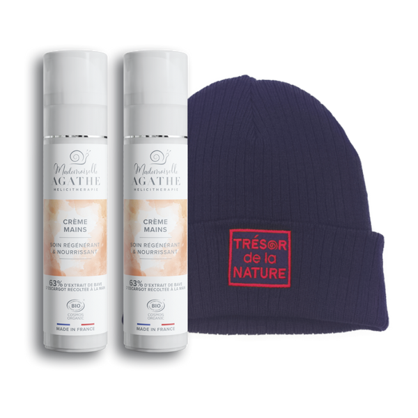 Dieses Handcreme-Duo ist Ihr unverzichtbarer Verbündeter im Winter, besonders an den kältesten Tagen. Nach längerer Einwirkung von Kälte oder schlechtem Wetter macht diese mit unserem Schneckenschleim-Extrakt angereicherte Creme die trockensten Hände weich, spendet Feuchtigkeit und pflegt sie tiefgehend, während sie gleichzeitig einen Schutzfilm auf der Haut bildet, ohne Fett zu hinterlassen.