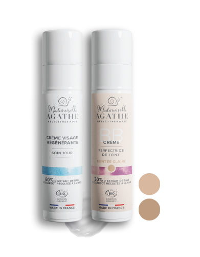 TEINT PERFECTING BB CREAM : Wasser, Schneckenschleimextrakt*, Weichmacher und Emulgatoren natürlichen Ursprungs, Aloe Vera*, Granatapfelextrakt, natürliche Pigmente mineralischen Ursprungs, 100 % natürlicher Duft, Konservierungssystem.