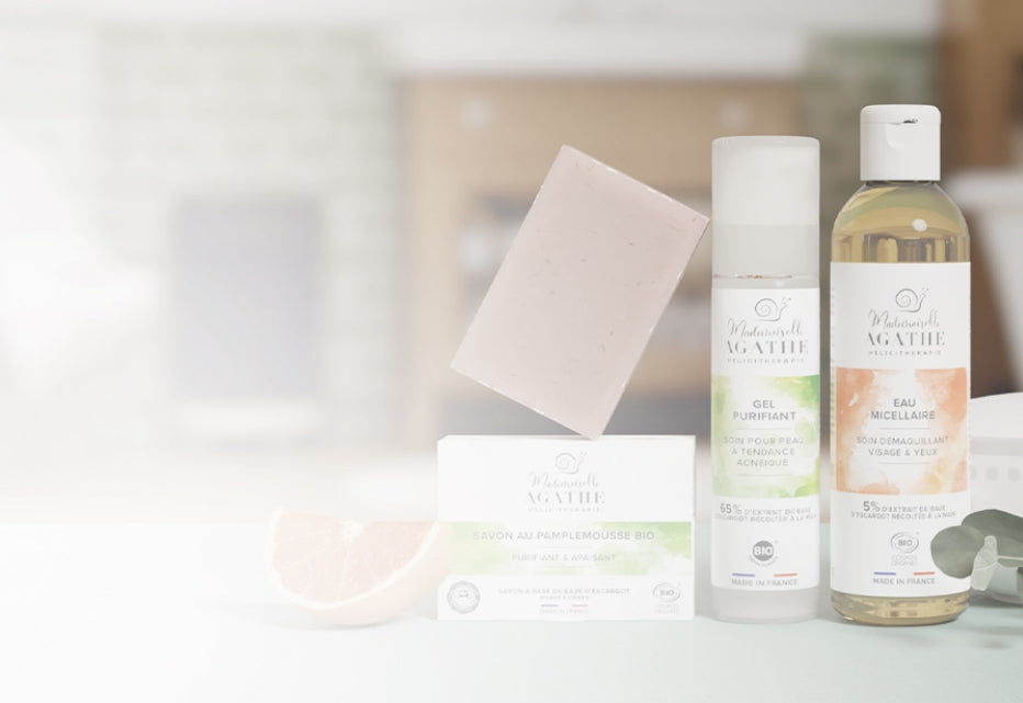 Zweitens reinigen Sie Ihre Haut mit unserer kaltverseiften Grapefruitseife, die ein natürliches Surgras ist. Sie reinigt Ihre Haut und versorgt sie vor allem mit Feuchtigkeit, indem sie den Hydrolipidfilm Ihrer Haut bewahrt. In dieser Seife tragen das ätherische Öl der Bio-Grapefruit und seine talgregulierende Wirkung zur Reinigung der Poren bei. Tatsächlich machen die antiseptischen Eigenschaften der Grapefruit sie zu einer empfohlenen Seife für zu Akne neigende Haut.