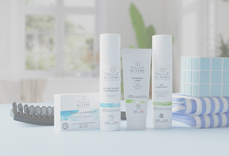 Entscheiden Sie sich zunächst für die kaltverseifte Bio-Lavendelseife . Dieses natürliche Surgras ist ideal, um Ihre Haut zu waschen und vor allem mit Feuchtigkeit zu versorgen, indem es ihren Hydrolipidfilm dank unseres Schneckenschleims in Kombination mit Sheabutter, Olivenöl, Kokosnussöl sowie Einschlüssen von Lavendelblüten, die das Lavendelöl unterstützen, bewahrt. ohne Konservierungsstoffe oder synthetische Substanzen. Diese Seife ist perfekt für die Tiefenreinigung und respektiert die Besonderheiten jedes Bereichs für eine ausgeglichene Haut.